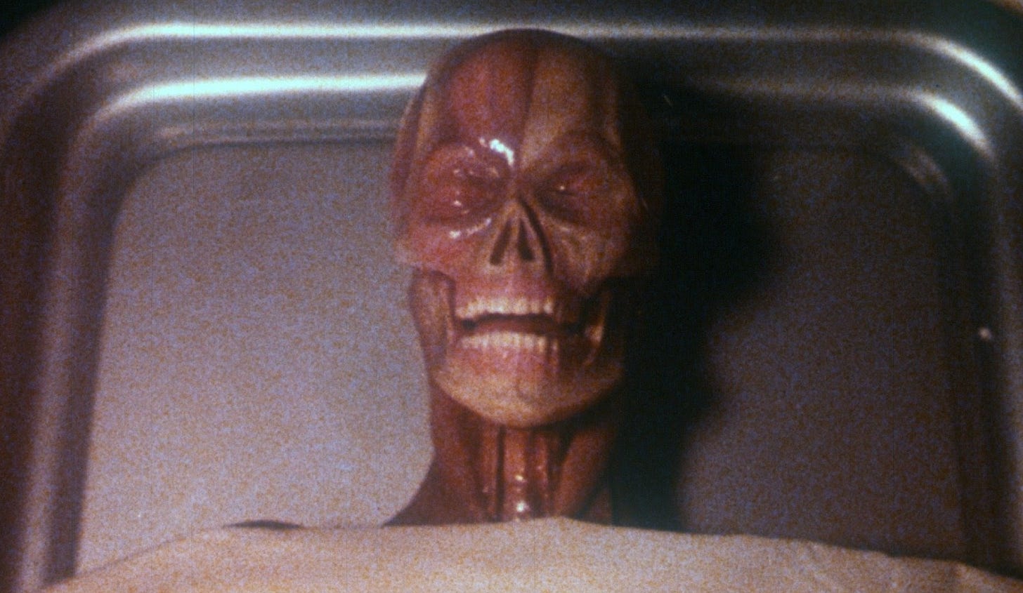 I’ll always give extra credit to a flick that really goes for it; a movie that takes it’s shot and really tries to pull the rug out from under you. The first time I saw Dead and Buried, it did that. It doesn’t play its hand tight to the chest. It lets you know early on that the people of Potter’s Bluff are up to something sinister. Normally, that would be the big the climatic reveal, instead we ride along with maybe the only person in town that isn’t in on the joke and then Dead and Buried hits us with an even bigger reveal, a deeply personal reveal that rocks the fabric of a man’s existence… And then it does it again and hits you with a surprise hook that gives the whole finale such operatic gravitas (perfectly acted by Farrentino) that solidifies this one as an underrated gem. TKO.